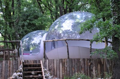 Dépaysement garanti avec notre Dôme Perché à 5 mètres de haut, notre Bull’O Sol posée dans l’herbe ou notre Bull’O Bois Dormant au milieu des Bois.